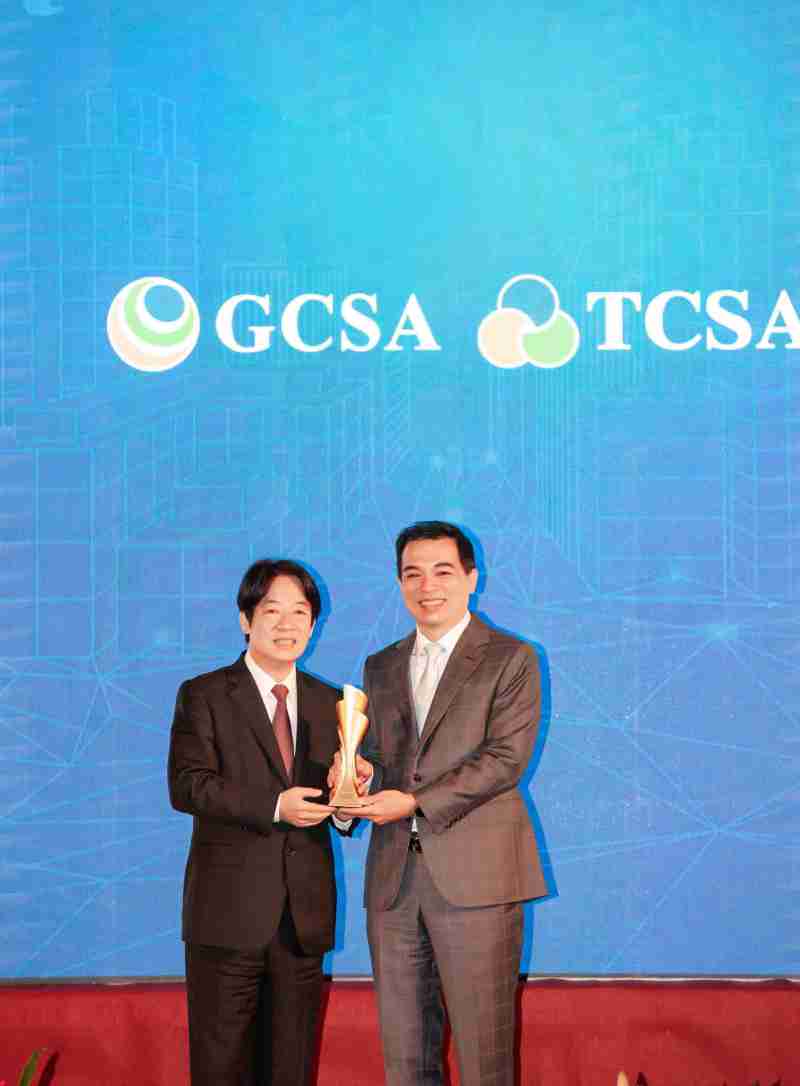 达全方位永续表现获全球永续奖及台湾永续奖肯定,,,由副总统赖清德颁奖 (左),,冰球突破总经理柯富仁 (右) 代表领奖