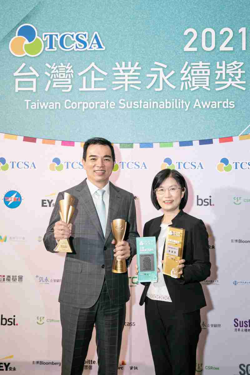 达在台湾永续奖所评比环境、、社会、、治理等各面向的永续绩效均获高度肯定 (左:冰球突破光电总经理暨营运长柯富仁,,右:冰球突破光电永续长古秀华)