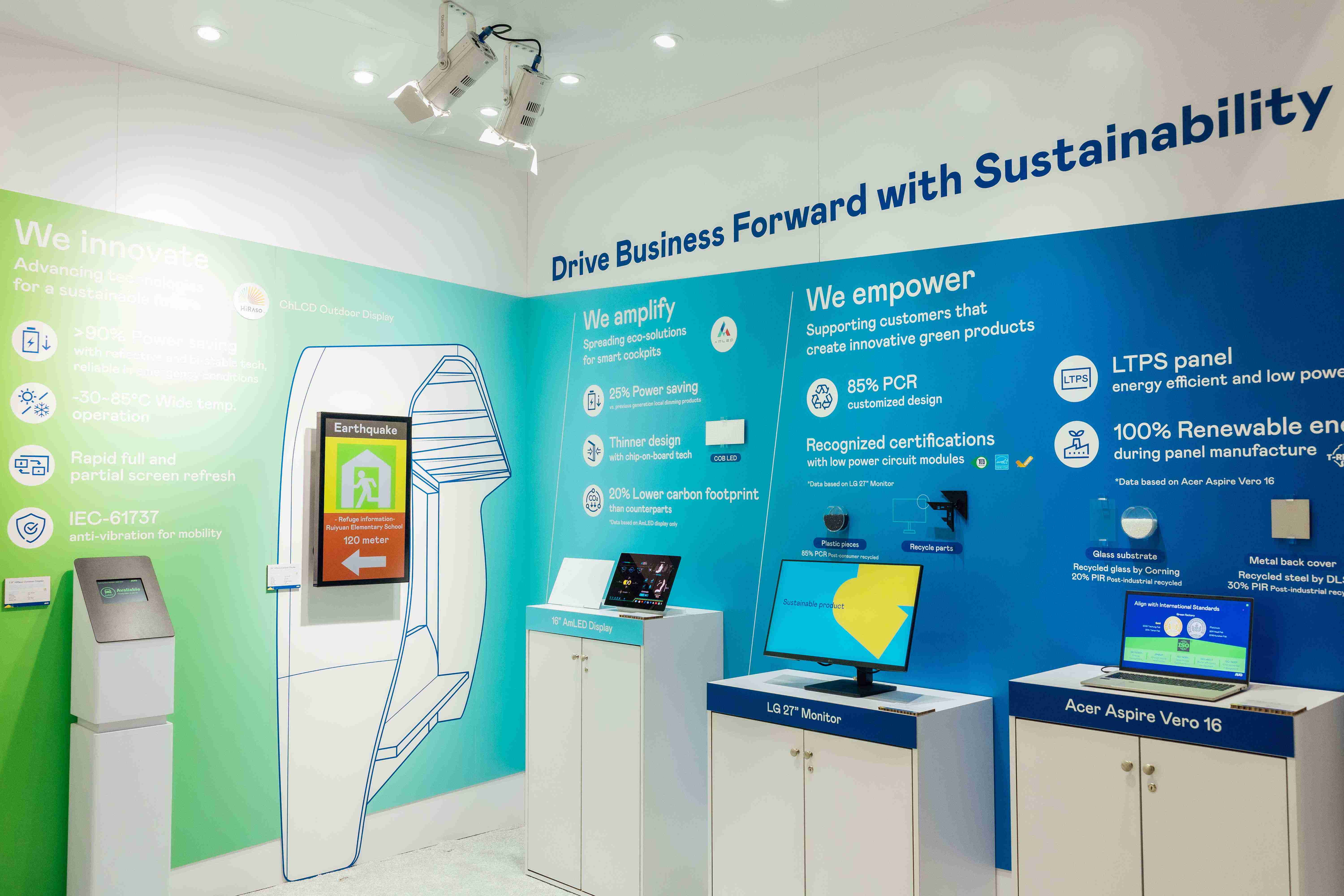 冰球突破运用创新显示技术HiRaso胆固醇液晶双稳态技术达到显示零耗能、、扩大节能省电的AmLED显示技术应用于车用产品、、以再生的消费后回收(PCR)塑料及全绿电生产之面板,,,,应用于笔电及萤幕,,增加绿色价值。。。