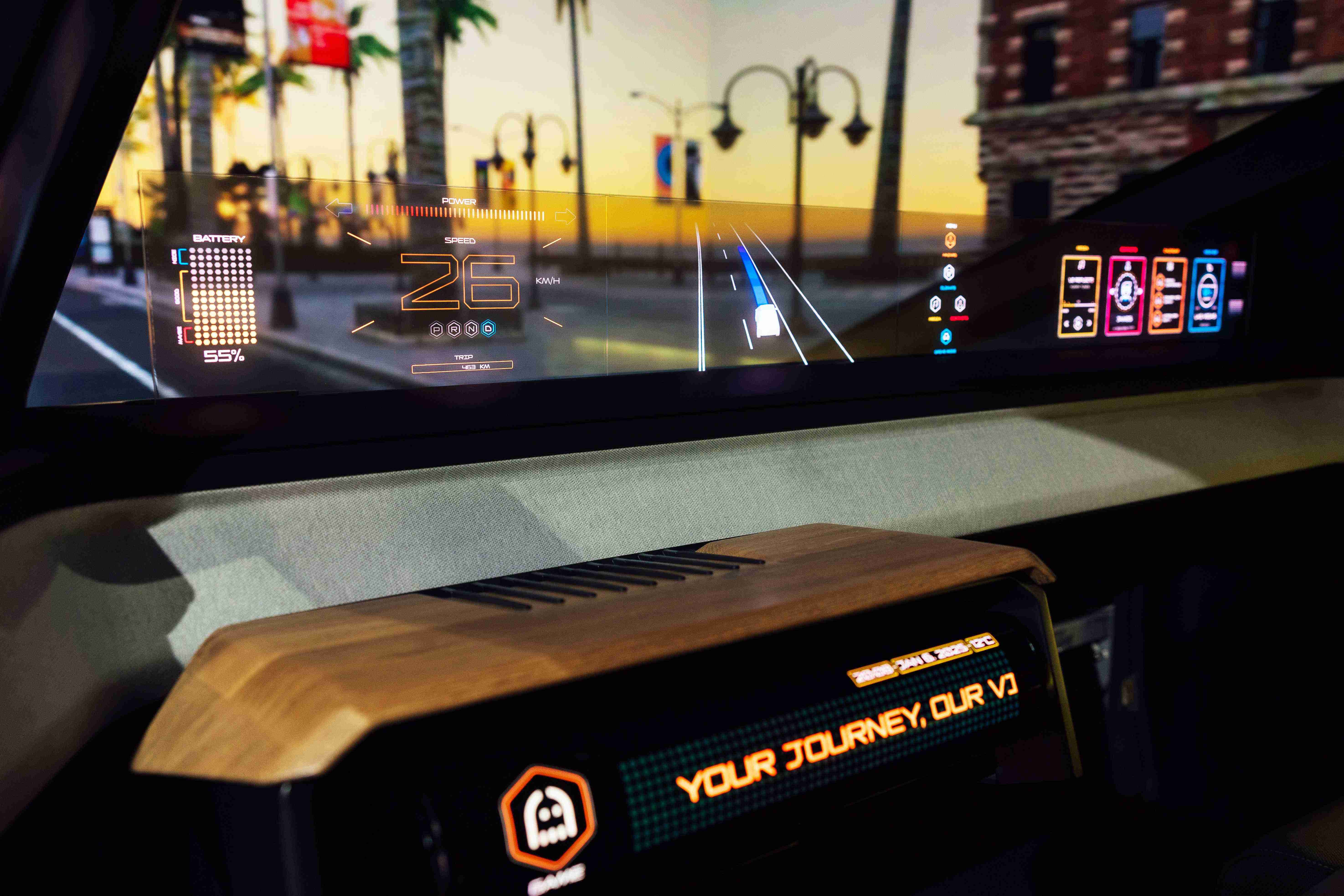 隐藏式智驾介面(Foldable Cruise Pilot)在不同模式下可以切换显示方式,,,,在手动驾驶模式时,,,显示器可以在半收合状态下,,,仍呈现所需资讯;自驾模式时,,显示器可以完全展开,,满足不同的多媒体娱乐需求。。。 冰球突破Smart Cockpit 2025 在车头及车尾搭载合作伙伴Ennostar开发的互动式矩阵显示器(Interactive Matrix Display),,,,其突破传设计框架,,,,利用优化的光源整合技术,,,提供更高亮度与对比度的显示效果,,,营造驾车者个性化风格并传递讯息。。。