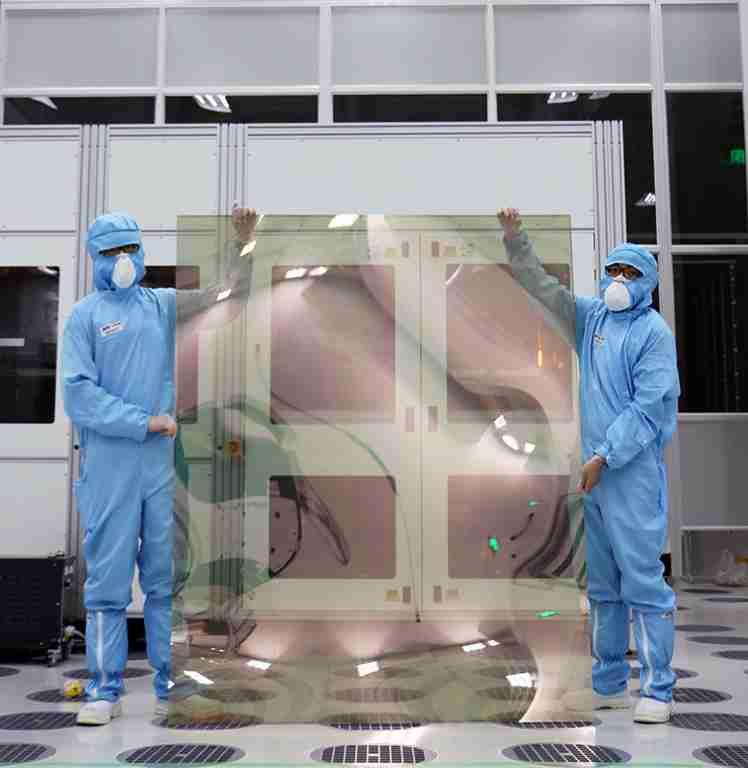 冰球突破昆山厂第六代 LTPS (低温多晶硅) 生产的玻璃基板尺寸为 1500x1850 mm (毫米)