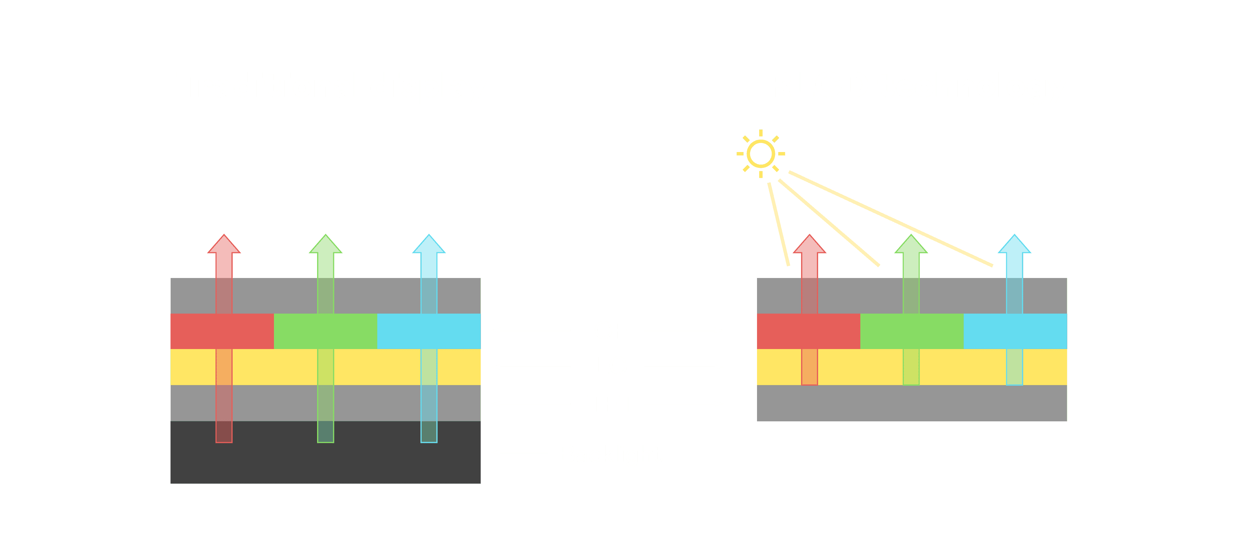 与传统需搭配背光单元的液晶显示相比,,反射式液晶技术不仅更省电、、、、更轻薄,,且即便在艳阳下仍能清晰显示。。此外,,少了背光单元,,也大幅降低了 LED 蓝光伤害眼睛的疑虑。。。。